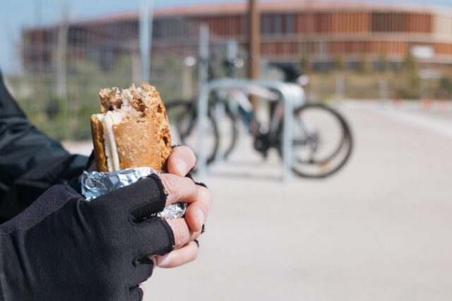 V případě, že plánujete vyjížďku na několik hodin, má smysl řešit, co si dáte k jídlu, abyste doplnili energii a zbytečně nezatížili trávení. V opačném případě byste toho smažáku s hranolky a tatarkou v bufetu po cestě mohli litovat. Snažte se volit takové svačiny, které obsahují nižší množství tuku. Ten se ze všech makroživin vstřebává nejdéle, což u jídla při sportu není žádoucí. Zaměřte se proto na stravu, která bude tvořena převážně sacharidy, případně bílkovinami. Sacharidy totiž slouží jako primární zdroj energie a bílkoviny zase více zasytí a podpoří regeneraci.