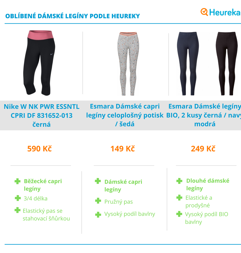 S výběrem dámských legín vám může pomoci také žebříček top produktů a hodnocení uživatelů na Heurece. Díky recenzím zjistíte, do kterých legín se skutečně vyplatí investovat.